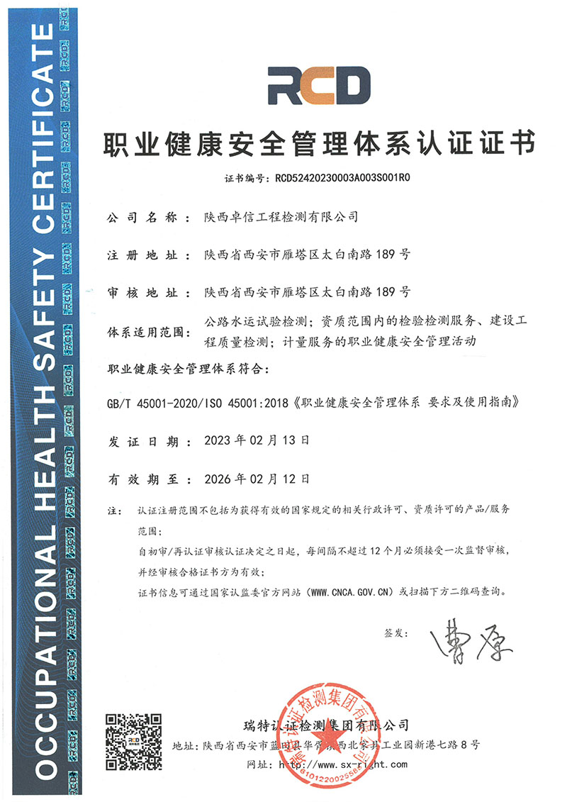 可承担公路工程:土、集料、岩石、水泥、水泥混凝土及砂浆、水、外加剂、掺和料、无机结合料稳定材料、沥青及沥青混合料、钢材及连接接头、路基路面、混凝土结构、基坑、地基与基桩、交通安全设施等工程质量检测业务。
