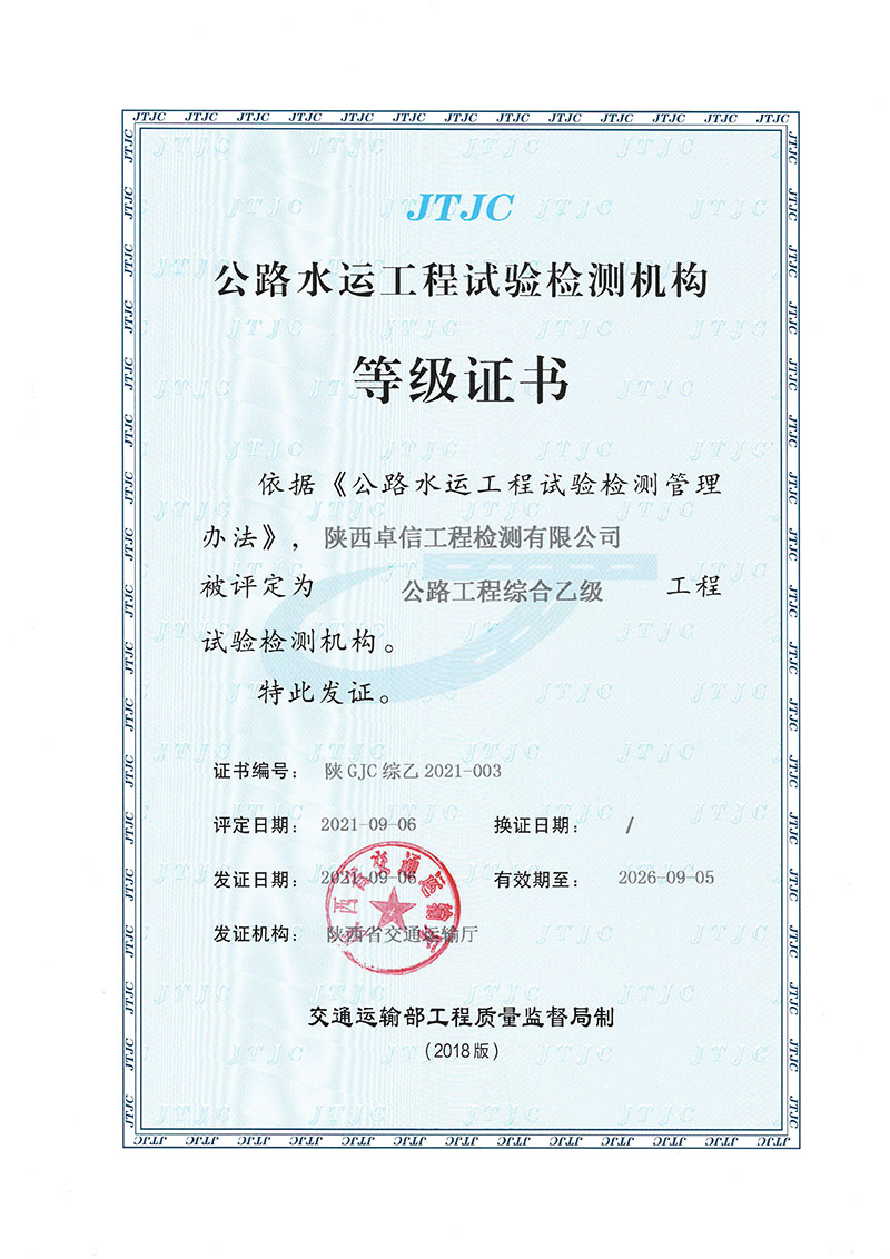 公路工程试验检测综合乙级资质